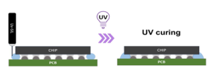 As electronic components continue to miniaturize, the demand for chip durability in handheld devices is increasing. The SIL-MORE R&D team introduces the UV-SIL™ Reworkable Corner Bonding Solution, which Solution, which utilizes UV curing to complete chip fixation within seconds. Compared to traditional thermal curing, this process saves 30–60 minutes of baking time while reducing thermal stress and solder joint defects. The solution effectively disperses stress and strengthens the bond between the chip and substrate, significantly enhancing reliability and durability. With its reworkable feature—removable by heat—it enables convenient repair, lowers scrap rates, and supports sustainability. This advanced adhesive solution meets the stringent requirements of miniaturized, high-precision packaging in next-generation electronics.